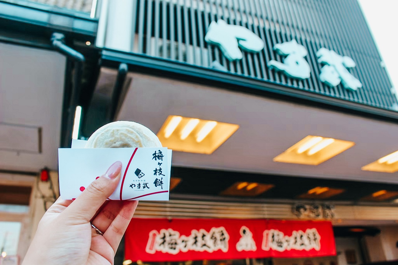There are many foods but I would recommend you to have “Umegae mochi” if you like Anko (Red bean paste). Outiside is Mochi, and there is anko paste inside, it’s good for a snack.